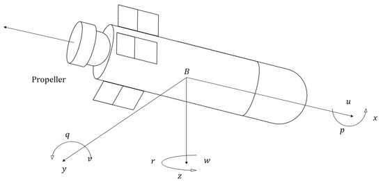 with , , and . The structure of the neutrally buoyant UUV concerned in this paper is depicted in Figure 1.