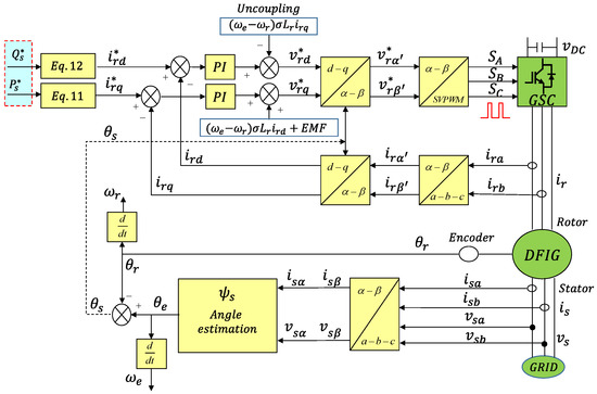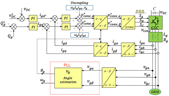 Thus, the grid voltage q component is zero and the active power is regulated with the grid current d component and the reactive power is regulated with the grid current q component [31,32].