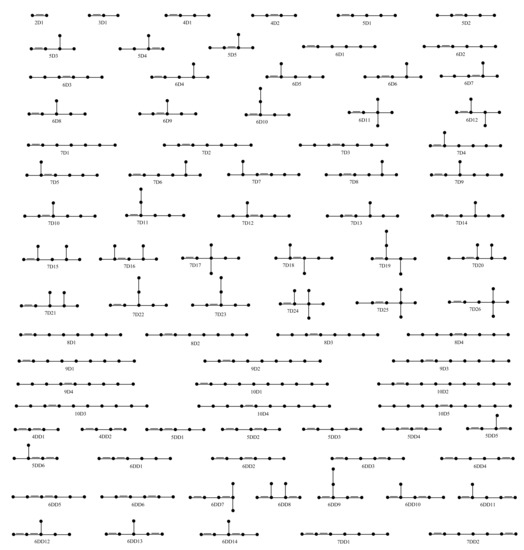 - Janežič, D.; Miličević, A.; Nikolić, S.; Trinajstić, N. Graph Theoretical Matrices in Chemistry; University of Kragujevac and Faculty of Science Kragujevac: Kragujevac, Serbia, 2007; pp. 22–24. [Google Scholar]