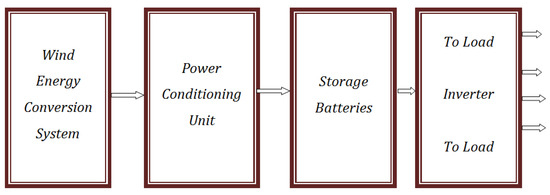 The influence on optimal flow of power, voltage, and management of frequency, power quality, and structure economics are increased due to the addition of RESs into control system grids. According to the behavior of RES power deviation, the impression on the LFC concern has involved rising research attention throughout the last era [10,11,12]. Substantial interrelated frequency fluctuations can cause over- or underfrequency transmitting and remove certain generations and loads. Under opposed situations, this may affect a dropping disappointment and miscarriage of the system. Figure 1 shows the block diagram of a wind energy generation system [13].