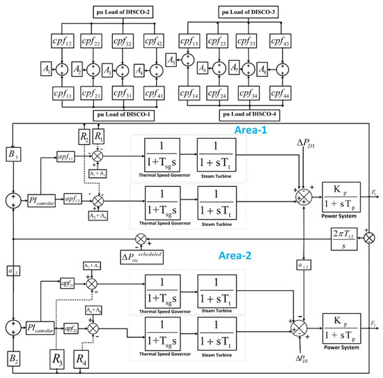When renewable energy sources are integrated into the power arrangement, a supplementary cause of the deviation is added to the arrangement’s adjustable behavior. To examine the deviations triggered by renewable energy source plants, the entire conclusion is significant, and every modification in renewable energy source output power does not requisite to be accorded with the conversion in other generating units running in the opposite way [19,20]. Sudden variations in load and renewable energy source output power might intensify each other either completely or partially. However, the sluggish renewable energy source power instability and entire average power fluctuation adversely subsidize power inequity and frequency distribution, which could be considered for the LFC arrangement. This energy variation must comprise a predictable LFC arrangement [21].