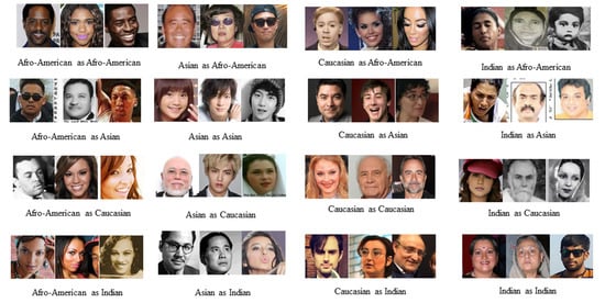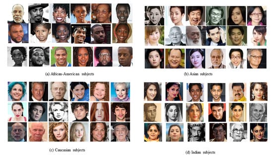 - Wang, M.; Deng, W.; Hu, J.; Tao, X.; Huang, Y. Racial faces in the wild: Reducing racial bias by information maximization adaptation network. In Proceedings of the IEEE International Conference on Computer Vision, (ICCV 2019), Seoul, Korea, 27 October–2 November 2019; pp. 692–702. [Google Scholar]