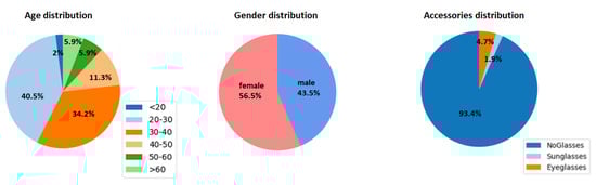 Moreover, we also evaluated the trained networks on other publicly available datasets which were not used in the training process—LHDF [48,49] and CAS-PEAL [50] in order to study the cross-dataset variance impact. The CAS-PEAL dataset is a large-scale Chinese database containing images of 1040 individuals (595 male and 445 female) with different variations (pose, expression, accessories and lighting). The LDHF database contains facial images of 100 subjects (70 males and 30 females), in both visible (VIS) and near-infrared (NIR) spectrum, captured at distances of 60 m, 100 m, and 150 m outdoors and at a 1m distance indoors.
