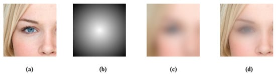 To implement the radial blur, the area of interest is blurred with a strong Gaussian filter and a gradient radial mask is generated based on the distance from the region’s center; the original and the blurred ROIs are blended according to the mask pixels in order to obtain the radial blur (Figure 6).