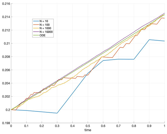In particular, if one wishes to investigate the stability of the random model (61) then Theorem 3 provides the relevant approximating ODE (62) which should be analyzed in order to have a qualitative behaviour of glioblastoma’s growth. The visualization of the result of Theorem 3 can be seen in Figure 3.