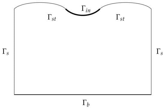 Boundary and initial conditions. We consider a quasi-real domain , with boundary , (see Figure 1). Let us supplement the complete system with boundary and initial conditions:
