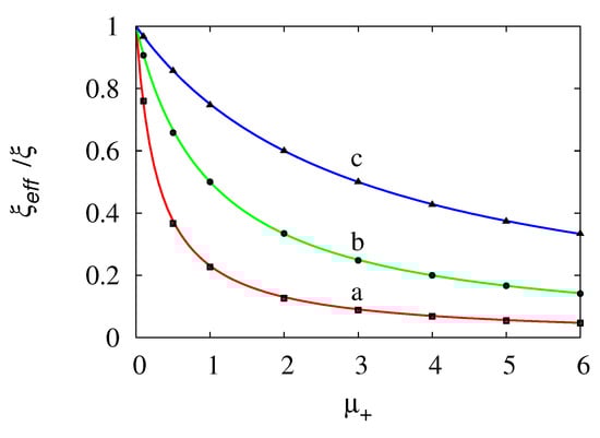 Stochastic simulation results support quantitatively the validity of Equation (57), as depicted in Figure 11. These data have been derived by considering the long-term relaxation of obtained from an ensemble of elements with given by Equation (15) at .