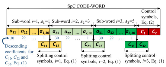 However, if the individual SpC sub-words are coupled with the auxiliary splitting control symbols and , they form embedded SpC sub-codes (Figure 1). Their respective syndromes are: