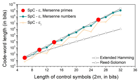 So far, we only considered the Mersenne primes = − 1, with the symbol length m also being a prime [22]. However, the information symbols with a prime number of bits have limited application value.