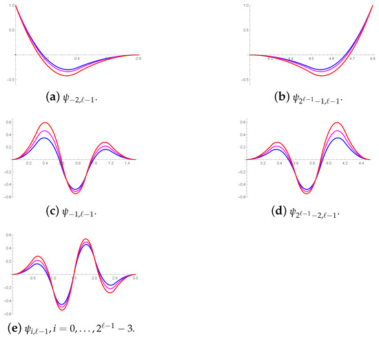 In Figure 5, we give an example of the generalized B-wavelettes of order 3, for (Blue line), (Magenta line), (Red line).