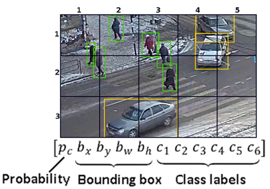 The neural network processes the video frame from the video flow and produces the tensor with coordinates and classification of objects within their bounding boxes (Figure 3).