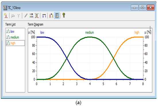 At the stage of the fuzzification of variables, we chose Gaussian membership functions as splines rather than triangular ones. This is most consistent with the problem statement in the stochastic version. The parameters of the Gaussian terms are determined according to the authors’ expert estimates based on practical work with the observation camera data.