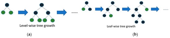 The LightGBM is the most diversely used boosted model that supports parallel training such as extreme gradient boosting [96]. When dealing with multi-dimensional datasets, the LightGBM works much better than the traditional boosting algorithms or XGBoost. Typically, the boosting algorithms split the tree structure horizontally (i.e., level-wise growth), whereas the LightGBM increases the tree structure vertically. Figure 2 shows the growth of tree division between level-wise and leaf-wise.