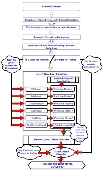 Therefore, after a successful review, we proposed a novel approach wherein ensemble models used a stacking framework, and the stacking framework takes the trained ensemble models as the base-level classifiers. Again, the ensemble models are to be used as the ensemble model meta-classifiers. In addition, we developed a unique combination of input features for the prediction of the stock market.