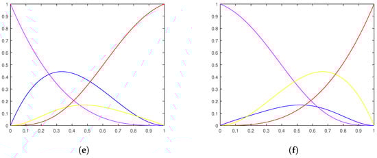 Cubic basis functions. (a) ; (b) ; (c) ; (d) ; (e) ; (f) .