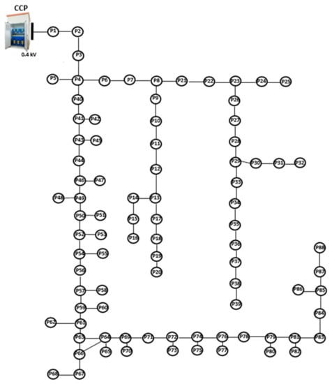 In the final stage, the quantification of the technical benefits obtained after applying the PLB algorithm has been achieved through energy savings and the phase voltage unbalance rate at the end poles (P88 and P39). The energy-saving has been calculated based on the following formula: