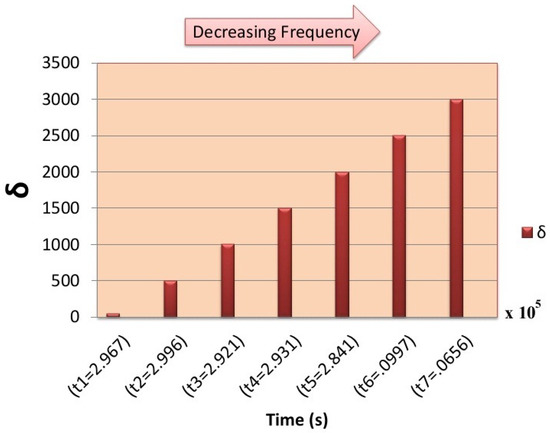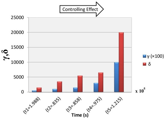 Thus, based on the Equation (15), due to a high value of , the post-neuron excitation current will be significantly increased and cause adverse effects on neuronal activity. Furthermore, In Figure 4, Figure 5 and Figure 6, the time interval of the post-synaptic neuron activity for different amounts of and is represented. As depicted in these figures, with increasing , the time interval for the post-neuron activity is increased, and with increasing , this problem can be solved. On the other hand, as is increased and is decreased, the spiking activity of post-synaptic neuron can be regulated.
