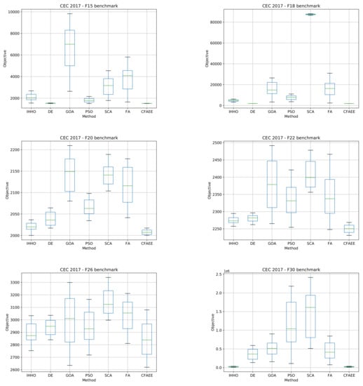 - Awad, N.; Ali, M.; Liang, J.; Qu, B.; Suganthan, P.; Definitions, P. Evaluation criteria for the CEC 2017 special session and competition on single objective real-parameter numerical optimization. Technol. Rep. 2016. Available online: http://home.elka.pw.edu.pl/ (accessed on 4 October 2021).