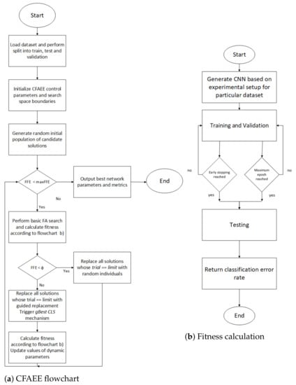 Accordingly, future work will focus on applying the proposed CFAEE method on other machine learning problems. Due to its promising performances, CFAEE will be adapted and used in tackling other NP-hard problems, including challenges in wireless sensor networks and cloud computing. Finally, regularization in CNNs can be further addressed by utilizing CFAEE and fine-tuning and parameters, with a goal to obtain even better classification accuracy. Moreover, the variables of the convolutional layers, such as the size and depth of the filters, can be parameterized through the CFAEE, instead of the more classical metaheuristic algorithms [].