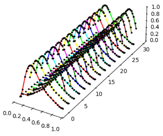 The graph of the function (left) and a fuzzy set A represented by 2020 equidistantly distributed points (right).