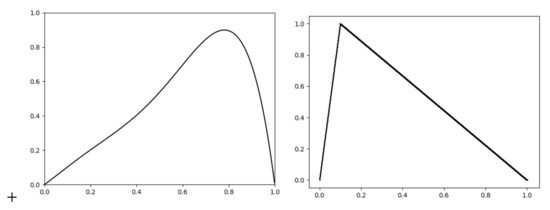 The graphs of the linearized function given by 18 points (left) and the fuzzy set given by 3 points (right).