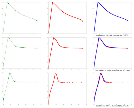 The distances (Euclidean, Manhattan) between the testing and the proposed algorithm for .