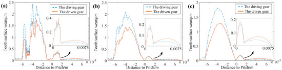 D are calculated. Then, based on Equation (12), the tooth surface wear Δ