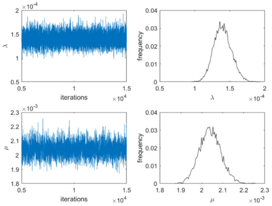 Figure 3 show the sampling process of the parameters based on the Jeffreys’ prior and reference prior, respectively. From