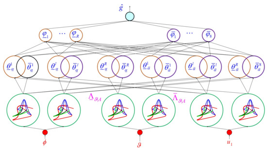 - The suggested membership functions (MFs) are shown in Figure 4. Two MFs are considered for inputs , and . The centers of Gaussian MFs correspond to the upper bound (UB) and lower bound (LB) of inputs. The upper MF is denoted by and the lower MF is denoted by . For , the upper memberships of and for the upper slice and lower slices areSimilarly, the lower memberships are obtained aswhere and are the centers of and , respectively. and are the upper width of at upper slice and lower slices . For input , we haveSimilarly, the lower memberships are obtained aswhere and are the centers of and , respectively. and are the upper width of at upper slice and lower slices .