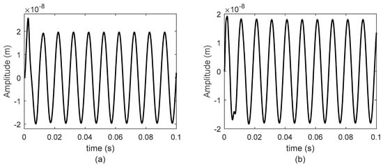 The displacement vector used in the algebraic identification procedure was obtained from Equation (7) by using the Newmark method for numerical integration and taking into account a constant rotational velocity of the rotor-bearing system.