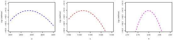 Plots of the profile-log likelihood functions of the fitted ECSGHL model for real data II.
