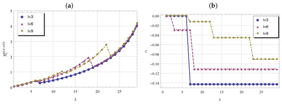 (a) and (b) versus and l.