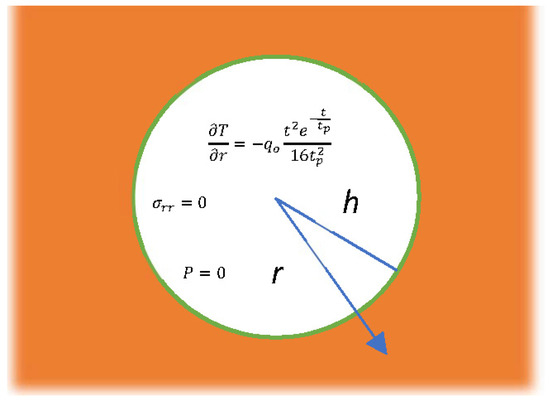 The boundary conditions can be given by the inner surface of the cavity are due to heat flux with the exponentially decaying pulse [41].