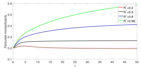 Graphical illustration of the model (8) for , IBP and various values of recycle ratio.