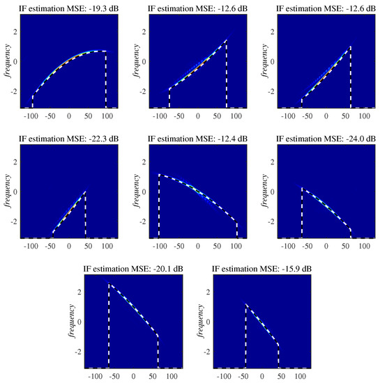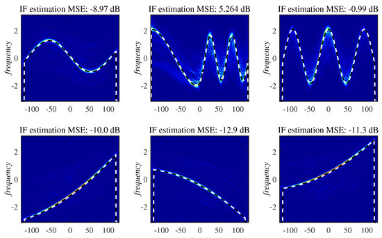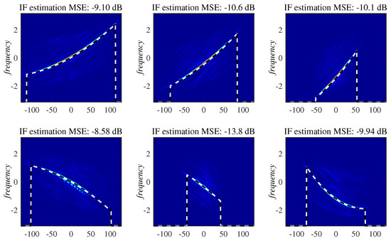 - Lerga, J.; Sucic, V.; Boashash, B. Multicomponent Noisy Signal Adaptive Instantaneous Frequency Estimation Using Components Time Support Information. IET Signal Process. 2014, 8, 277–284. [Google Scholar]