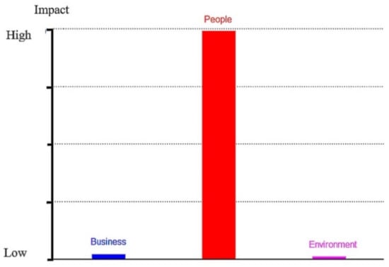 The modeling results at the maximal attribute thresholds convincingly showed that the absolutely dominant pillar of the digital technology sustainability TBL model is society , but the impact on business and the environment is relatively insignificant if we abstract it from the interaction of the pillars (see Figure 2).