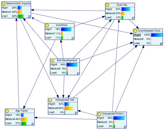 The tangible result of this study is the Bayesian network of digital technology’s hidden and unanticipated factors’ impact assessments, which makes it possible to improve the technology’s initial sustainability forecast.