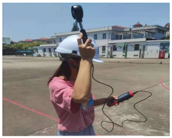 - The experimenter wore a smart helmet and held a digital anemometer. The experimenter pressed the storage function of the digital anemometer to save the real-time ambient wind speed (Figure 4).