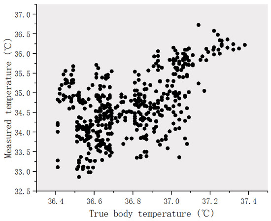 Figure 5. Scatter diagram of true body temperature and measured temperature.