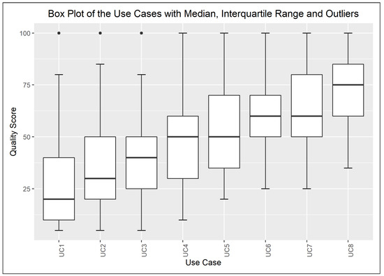 Quality Scores Assigned to the Use Cases, with Q1, Q3, and Median Values.