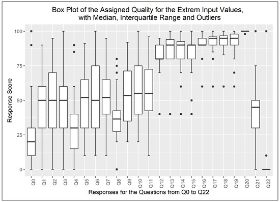 Quality Scores Assigned to the Extreme Input Values, with Q1, Q3, and Median Values.