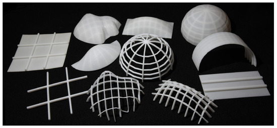 Stiffened structures can be divided into single- and double-sided structures. Single-sided stiffened structures have all of the stiffeners on one side of the skin’s surfaces (Figure 3a). Double-sided stiffened structures have the stiffeners on both sides of the skin’s surfaces (Figure 3b). Due to the requirement of aesthetics, 3D printed objects should be stiffened on one side. Therefore, we only investigated single-sided stiffened structures in this paper.