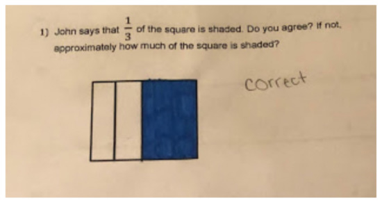 Teacher: “John says that of the square is shaded. Do you agree? If not, approximately how much of the square is shaded?”