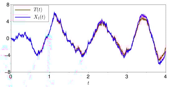 Remark 1. Dornier and Querel [15] and Alaton et al. [17] assumed that the daily average temperature is modelled byThe term is the deterministic seasonal component of the formwhere a, b, and for are constants to be determined. The stochastic deseasonalised component is described by the stochastic process , whereand is a standard Wiener process. The parameters λ, μ and σ denote the mean reversion rate, long term average and volatility, respectively, of the process X. It is well known that X is an Ornstein–Uhlenbeck process andThus, the expected value of in (7) isNote that this is not periodic in t. Comparing (7) with (5), we see that in (5) there are two driving Wiener processes and . Moreover, the expected value of in (5) iswhich is a periodic function of t and shows that the deterministic component of the temperature would also satisfy a harmonic oscillator ODE. The model we propose here is different from other two-factor models in the literature as (5) is obtained from the system (3), which in turn is a stochastic analogue of the harmonic oscillator model (1). In contrast, Hell et al. [21] established a general theoretical framework for the pricing of temperature derivatives by consistent factor models. Groll et al. [22] provided an empirical back-up for the theoretical framework introduced by Hell et al. [21] and put their pricing approach into practice. 3. Numerical Simulations of a Stochastic Harmonic Oscillator Temperature Model