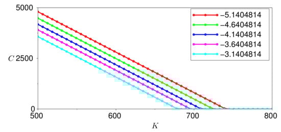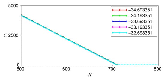 Remark 3. The -norm of the difference between and is . Following the explanation given in Remark 2, the value was chosen because it produced the smallest -error amongst all the values of k taken from to in increments of .