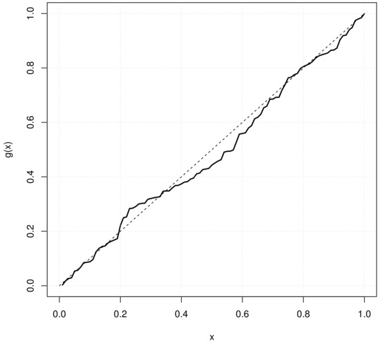 where is given by (55). The solutions, and , of c and k from (57) and (58), simultaneously, are the MLEs of c and k, respectively. Therefore, the empirical Bayesian estimate of will be obtained via replacing c and k in with and . In this section, the empirical Bayesian estimates for all Bayesian estimates mentioned before will be presented as follows,