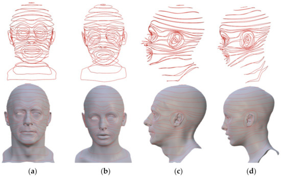 (2) When a new head model is input, we match the standard 3D head model with the input model. Accordingly, the template is transferred to the input model to extract the boundary curves. The details of curve extraction are given in Section 4.1.