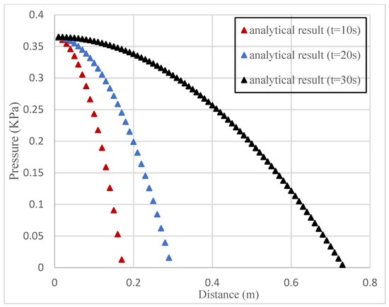 Simulation results and analytical results of radial pressure distribution at different positions.