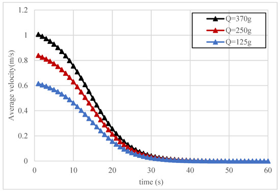 Variation curve of velocity at the interface between slurry and air with time under different grouting amount.