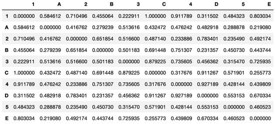 There exists several different TMT settings that can be adopted. For instance, a patient could be supposed to link ordered series of numbers or letters (which we will generally call symbols in the following paragraphs) drawing with paper and pencil [20] or onto an electronic device [21,22]. In other settings, tested people are required to sit in front of a monitor and interact with screen-based content, through an eye-tracker device [23,24]. Our study is carried out based on this last setting, which allows us to perform a Visual Sequential Search Test (VSST). In particular, the stimulus images submitted (in this order) to the patient are illustrated in Figure 2, and the required task is to make the sequence 1-A-2-B-3-C-4-D-5-E at least once during the whole test time.
